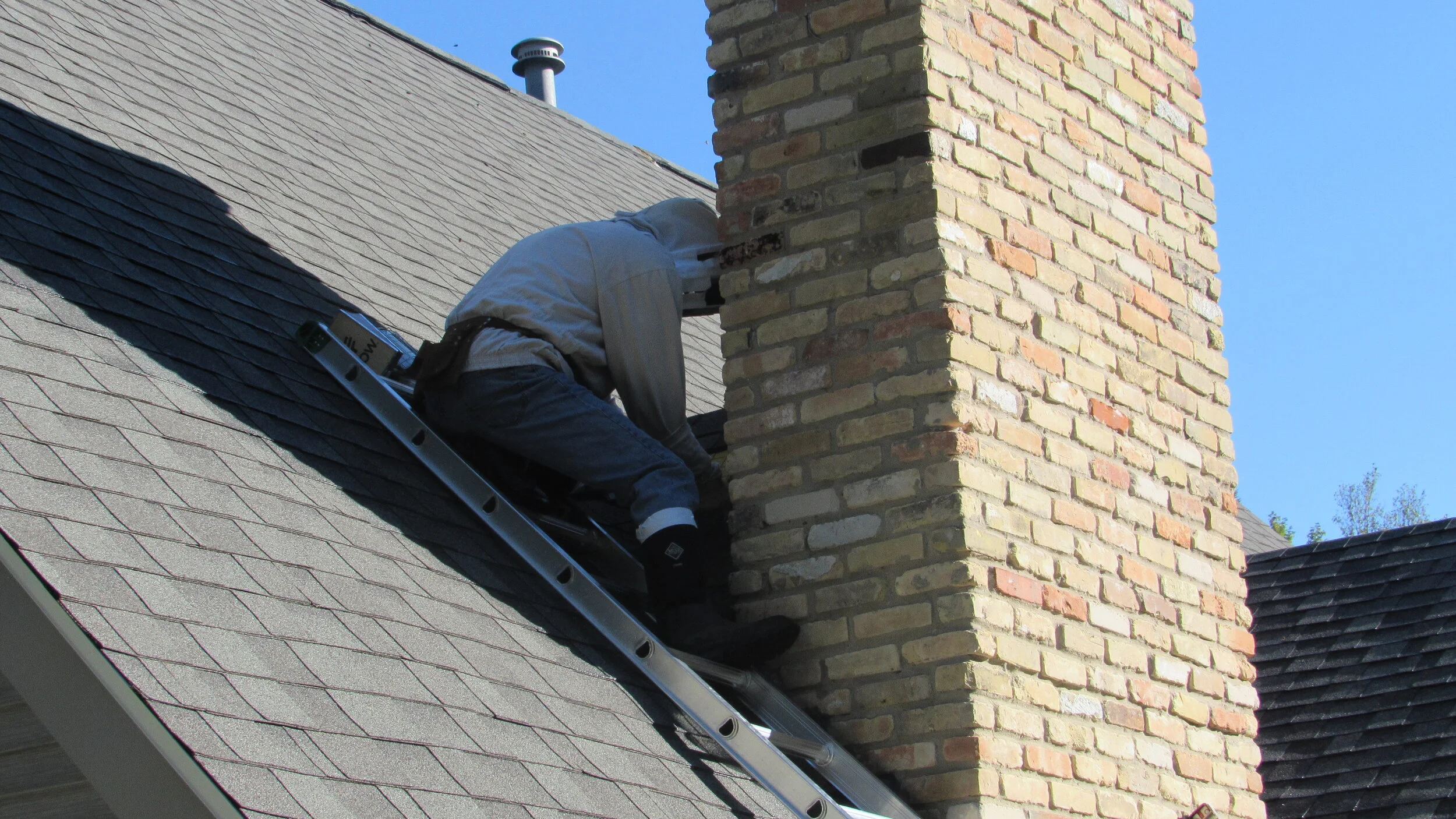 Jerry cutting the hole in the roof saddle to access and remove the honeybees
